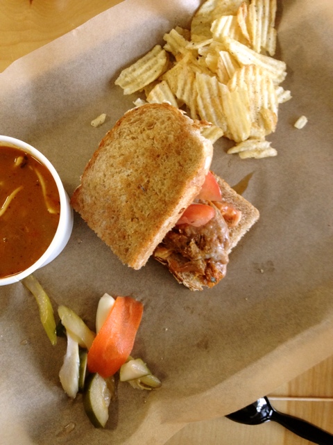 And when you’ve eaten your way through all eleven sandwiches on the menu — enjoying catfish, pork belly, roast beef, and even a three cheese and cauliflower blend along the way — you can sample their daily sandwich special which recently featured braised pork and big slices of tomato. They also have daily soup specials like the beef stew that was a perfect companion for the braised pork sandwich.