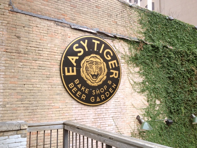 I’ve lived in Austin for, well, let’s just say a very long time. In all of those years 6th Street has been known for many things but great food wasn’t one of them. When Parkside moved in five years ago there was some hope that 6th Street might become more than just a corridor of late night bars offering cheap shots and hidden corners for canoodling (something I know nothing about, really, I swear). And while the evolution of the street hasn’t come as quickly as we’d all like, the addition of Easy Tiger Bake Shop and Beer Garden Gives me hope. Open from 11:00 am to 2:00 am to feed the 6th Street crowds, Easy Tiger is a great downtown lunch spot because they are an easy walk from the 6th and Congress hub as well as the Convention Center. And the food – well it’s downright good. Most of the menu is house-made, from the breads to the meats and even the mustard, so it has the satisfying taste of artisan cooking, created with care and attention to detail.